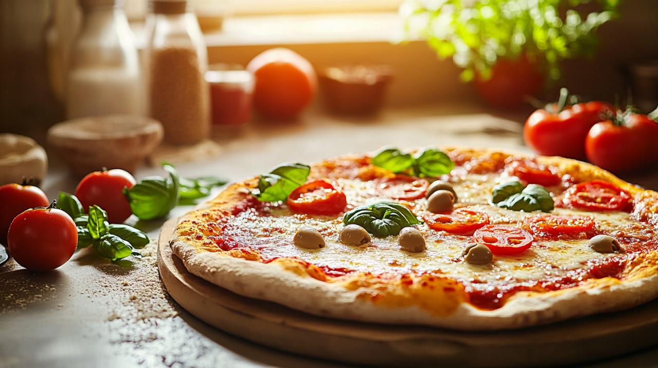 L’épaisseur de votre pâte à pizza influence directement le temps de cuisson et la texture finale. Une pâte fine, caractéristique de la pizza napolitaine, nécessite une chaleur très élevée et une cuisson rapide pour obtenir ce croustillant incomparable sans dessécher l’ensemble. Dans un four domestique, cette finesse peut représenter un défi, car la température maximale reste inférieure à celle des fours à bois traditionnels qui dépassent 500 degrés. Pour compenser cette limitation, l’utilisation d’une pierre réfractaire s’avère particulièrement efficace. Composée de cordiérite, de terre cuite, de lave ou de céramique, cet accessoire accumule la chaleur pendant le préchauffage et la restitue de manière intense et constante à la pâte, créant ainsi les conditions idéales pour une base parfaitement cuite. La garniture doit être ajoutée au dernier moment, juste avant l’enfournement, afin d’éviter que l’humidité ne détrempe la pâte. Il est essentiel de ne pas surcharger votre pizza en sauce tomate ou en légumes riches en eau, car l’excès de liquide empêcherait la pâte de sécher correctement et créerait une texture molle et désagréable. Pour les garnitures particulièrement humides, une astuce consiste à précuire légèrement la croûte pendant 3 à 4 minutes avant d’ajouter les ingrédients, créant ainsi une barrière qui protège la base de l’humidité excessive. Le choix de la farine utilisée pour confectionner votre pâte influence également le résultat, certaines variétés étant spécialement conçues pour la fabrication de pizzas et offrant une meilleure élasticité ainsi qu’une capacité supérieure à supporter les hautes températures.
